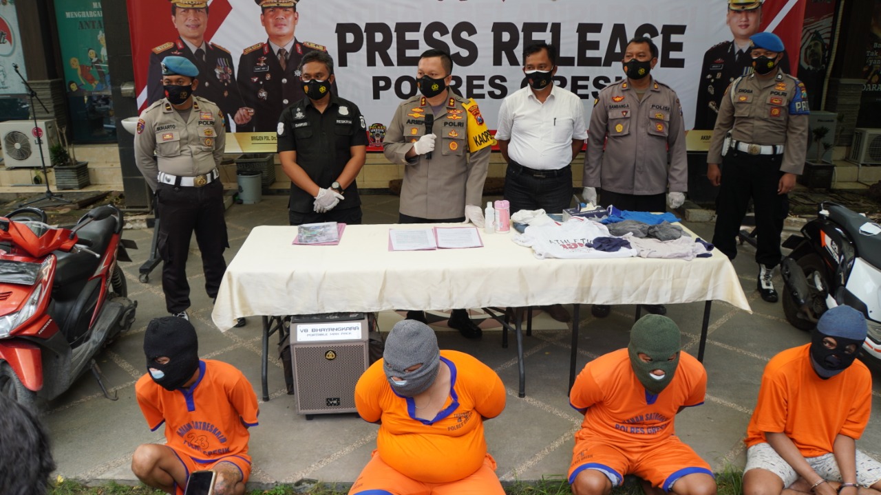 Dalam Press Release tersebut jajaran Satreskrim Polres Gresik berhasil meringkus 4 tersangka pencurian sepeda motor (Curanmor). Delapan motor hasil curian berhasil diamankan oleh aparat Kepolisian.