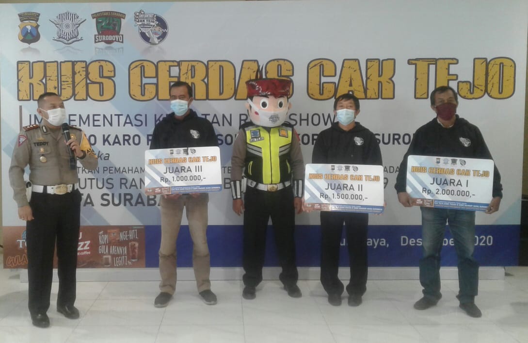 Dalam kunjungan kali ini Tim Investigasi juga meliput juara kuis program Satlantas Polrestabes Kuis Cerdas”Cak Tejo” yang  di saring dari warkop-warkop di 25 kecamatan se-Surabaya dalam giat kemarin,untuk pemenang mendapatkan uang tunai dengan nominasi juara 1,2 dan 3 yang langsung di berikan AKBP Teddy Chandra,S.I.K.,M.Si dalam forum terbuka kuis Cerdas”Cak Tejo”jogo Suroboyo